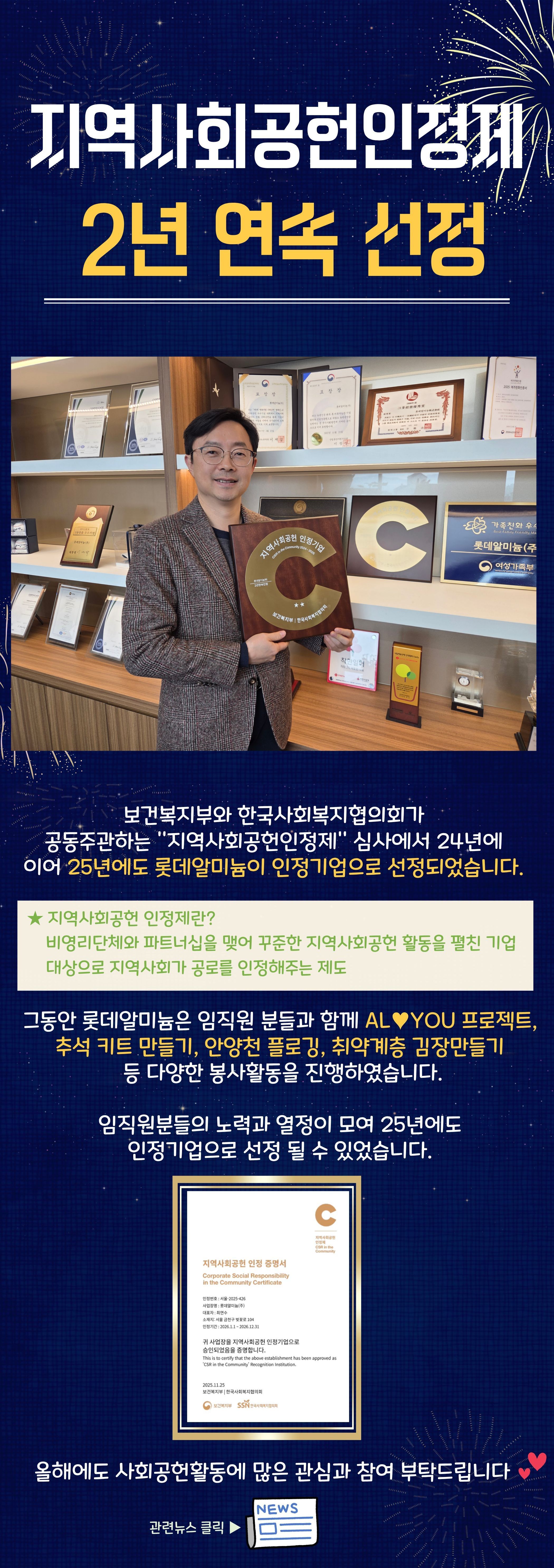 지역사회공헌인정제 2년 연속 선..