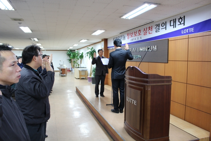 2월 5일 롯데알미늄 전 임직원은 정보보호 교육과 함께 정보보호 실천 결의를 했습니다.
